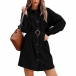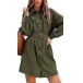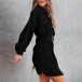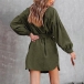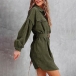 Street Fashion Solid Color Stand Collar Long Sleeve Self-tie Corduroy Shirt Dress