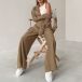 Street Fashion Solid Color Stand Collar Long Sleeve Straight-cut Jumpsuit