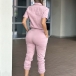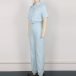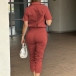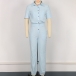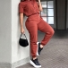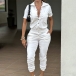 Street Fashion Solid Color Stand Collar Short Sleeve Front Button Elastic Waist Jumpsuit