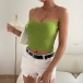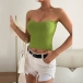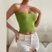 The strapless design of this top adds a touch of allure and sophistication to your look. It showcases your shoulders and collarbone, creating a flattering and feminine silhouette. The knitted fabric adds texture and depth to the top, making it a standout piece in your wardrobe.