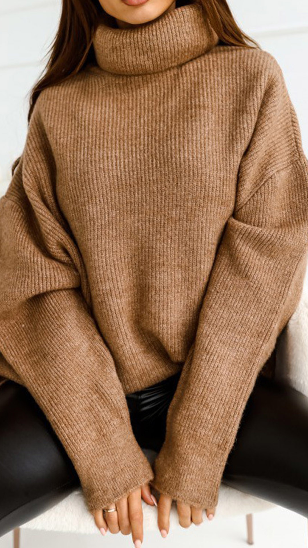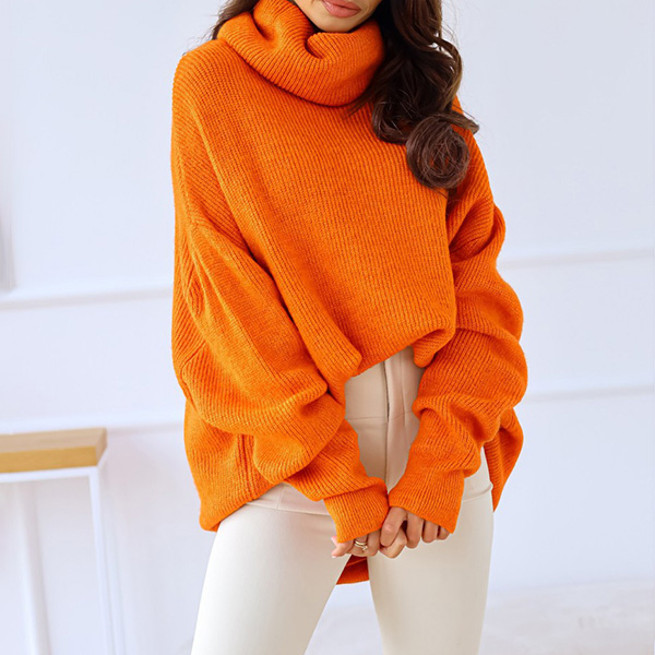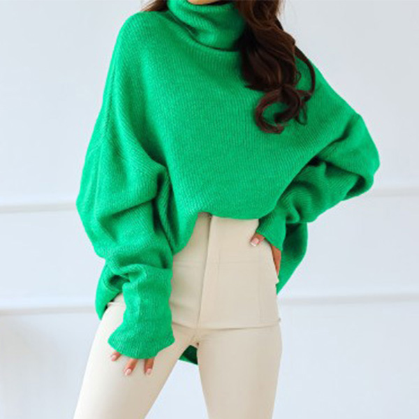This sweater is in solid color design, adds a versatile and timeless touch, making it easy to pair with any outfit. The turtleneck adds a chic and sophisticated element, while the batwing sleeves provide a relaxed and comfortable fit.