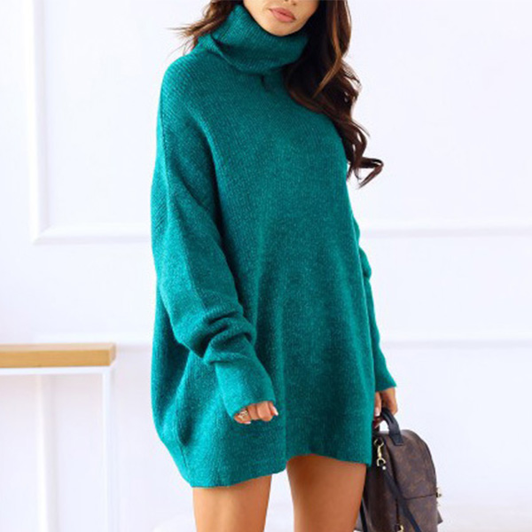 Street Fashion Solid Color Turtleneck Batwing Sleeve Sweater