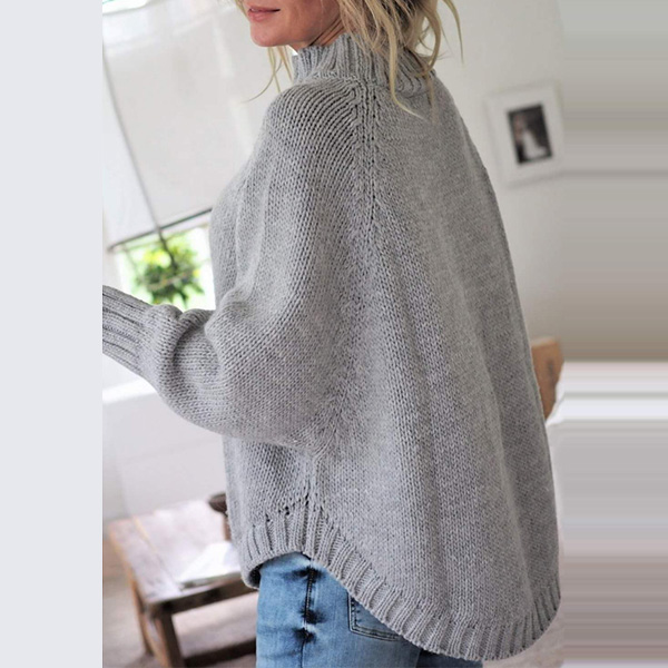 Street Fashion Solid Color Turtleneck Long Sleeve Irregular Hemline Knitted Sweater