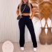 Street Fashion Solid Color Two-piece Set Consist of Crop Top and Drawstring Pants