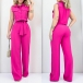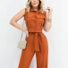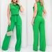 This set combines a solid color design, a crop top, and wide-leg pants with self-tie waist for a trendy and stylish streetwear look.