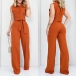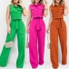 Street Fashion Solid Color Two-piece Set Consist of Crop Top and Self-tie Wide-leg Pants