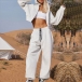 Street Fashion Solid Color Two-piece Sport Set Consist of Drawstring Hooded Crop Sweatshirt and Drawstring Sweatpants