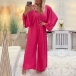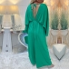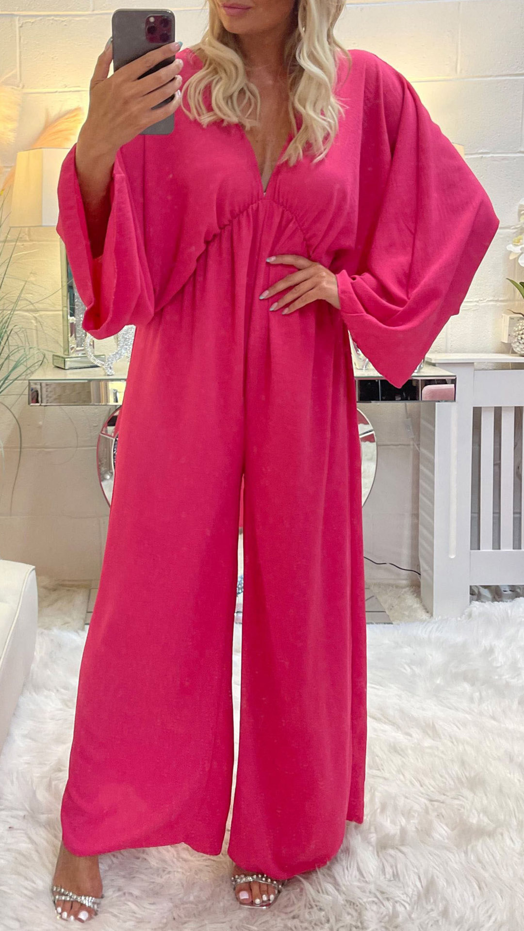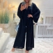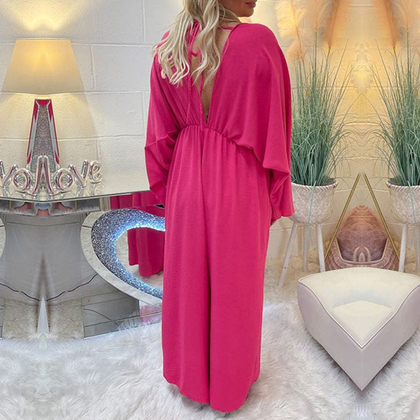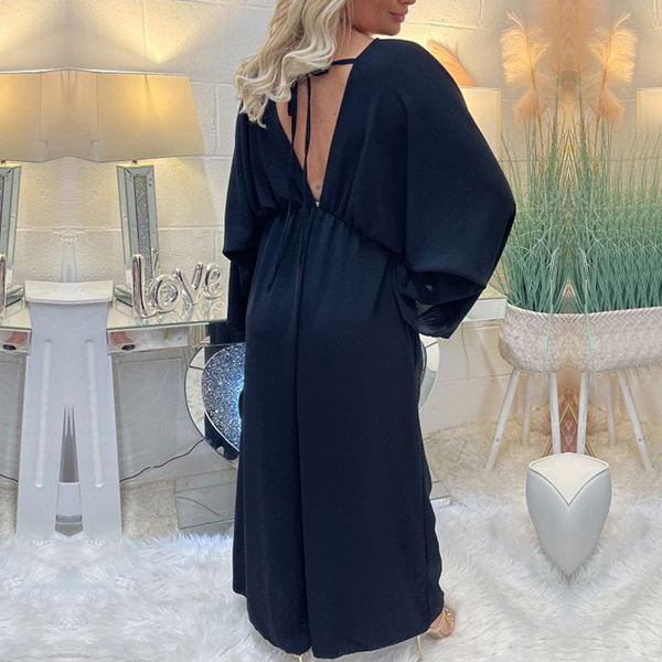 This jumpsuit features a trendy V-neckline, batwing sleeves, and wide-leg silhouette, giving it a touch of unique and fashion. Made from high-quality materials, this jumpsuit is not only comfortable but also durable. Hope you like it.