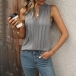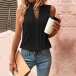 Street Fashion Solid Color V-neck Pleated Sleeveless Shirt