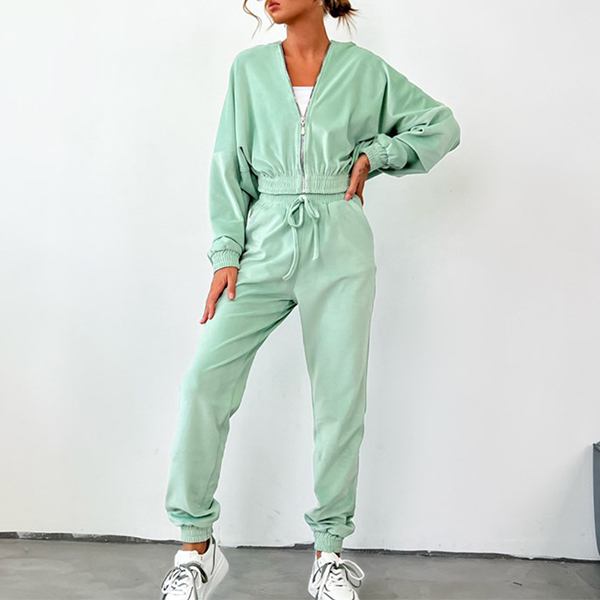 Street Fashion Sporty Two-piece Set Consist of Crop Sweatshirt Jacket and Drawstring Sweatpants