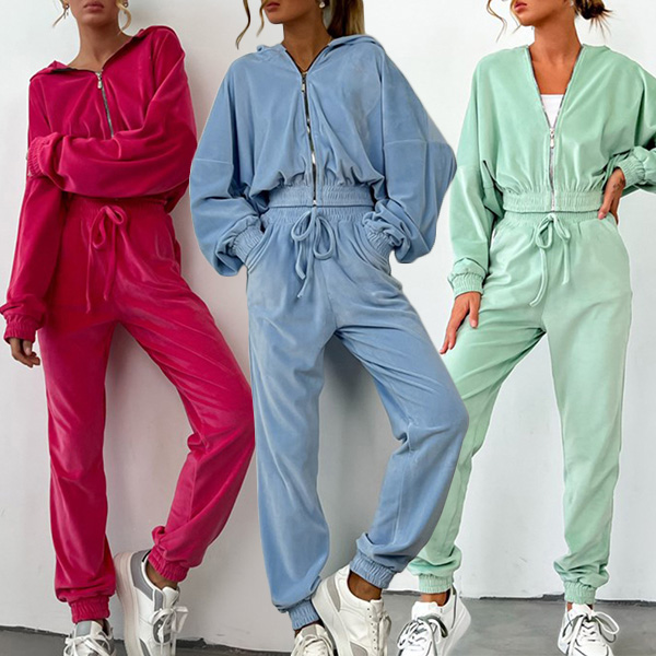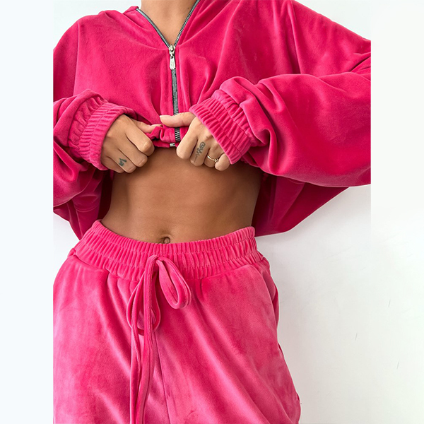 For casual outings, running errands, or lounging at home, this two-piece set is versatile and effortlessly cool. The Crop Sweatshirt Jacket features a cropped design, allowing you to show off your fashion-forward style. The drawstring sweatpants offer a relaxed fit and an adjustable waist for a personalized and comfortable fit. Both pieces are crafted from high-quality fabric that feels soft against the skin and ensures breathability.
