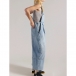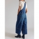 Street Fashion Square Neck Side Pockets Adjustable Shoulder Strap Wide-leg Old-washed Denim Jumpsuit