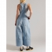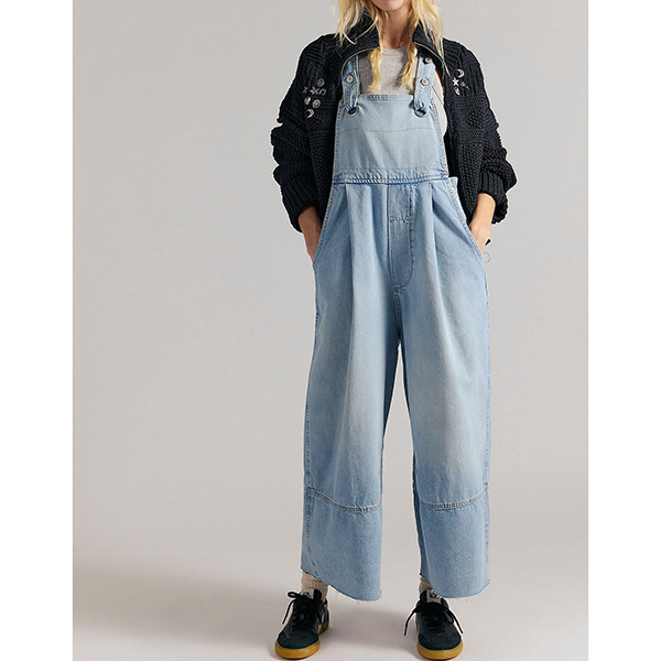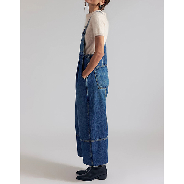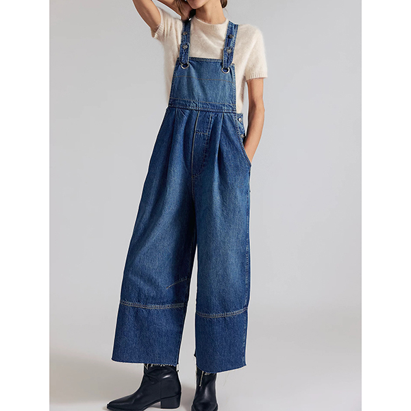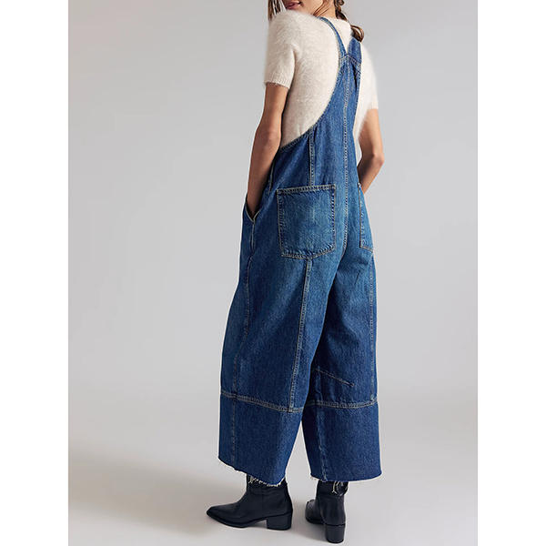 Own the streets in this edgy denim jumpsuit that perfectly captures urban cool with vintage flair. The trendy square neckline adds contemporary edge and frames your collarbone beautifully, while adjustable shoulder straps allow you to customize the fit for perfect comfort. Old-washed denim brings authentic, lived-in character and effortlessly cool distressed appeal. Wide-leg pants create dramatic flow and retro-inspired silhouette, elongating your frame while delivering statement-making impact. Pair with chunky sneakers and a bucket hat for full street style vibes.