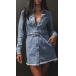 Street Fashion Stand Collar Front Button Long Sleeve Frayed Hemline Denim Dress with Belt