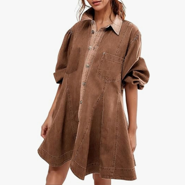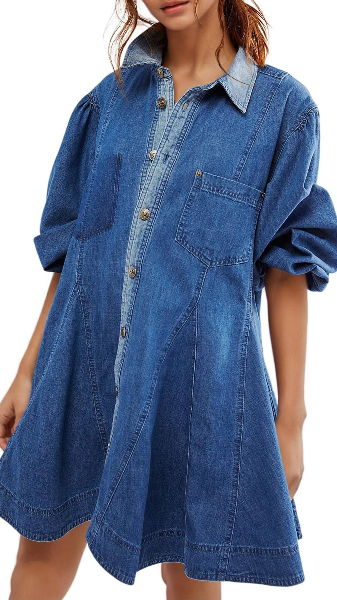 This denim dress features a stand collar, lantern sleeves, front button closure, and a flattering silhouette that is perfect for a casual and chic street style look. Pair it with sneakers/over-the-knee boots and a crossbody bag for a casual and effortless street style look.