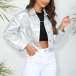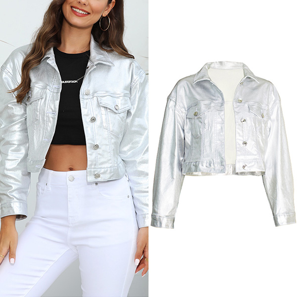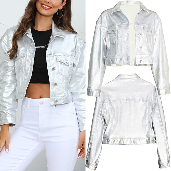 Street Fashion Stand Collar Long Sleeve Artificial Leather PU Crop Jacket