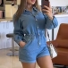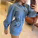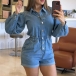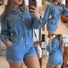 Street Fashion Stand Collar Long Sleeve Elastic Waist Old-washed Denim Romper