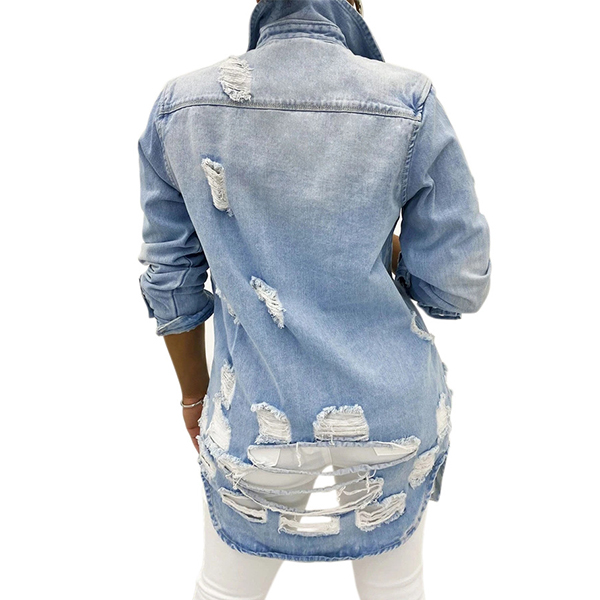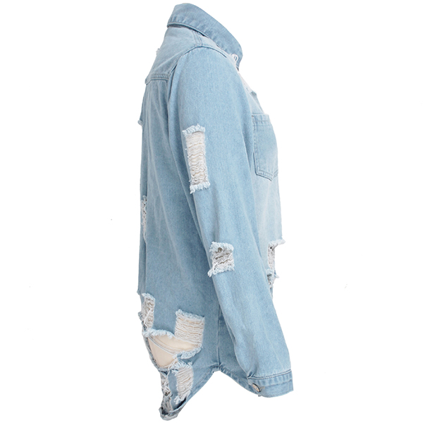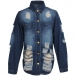 Achieve a cool and edgy street style look with this old-washed denim jacket. The heavy distressed detailing gives the jacket a rugged and worn-in look, adding a touch of rebelliousness and character. Pair this denim jacket with ripped jeans and boots for a grunge-inspired look, or layer it over a dress for a trendy and casual outfit.