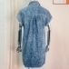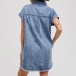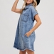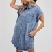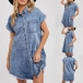 This denim dress features a trendy stand collar, short sleeves, patch pockets, a front button closure, and a frayed hemline. Crafted from high-quality denim fabric, this dress offers both comfort and durability.