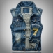 Street Fashion Stand Collar Sleeveless Patch Old-washed Denim Vest for Men