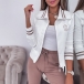 This jacket featuring a stand collar, zipper front, and long sleeves inspired by classic baseball jackets. Perfect for street style looks, casual outings, or as a fashionable outerwear option.