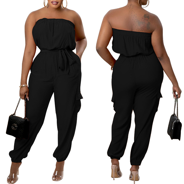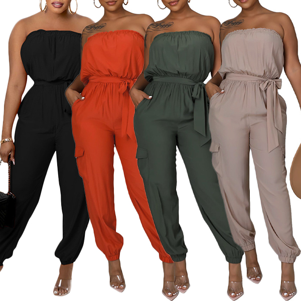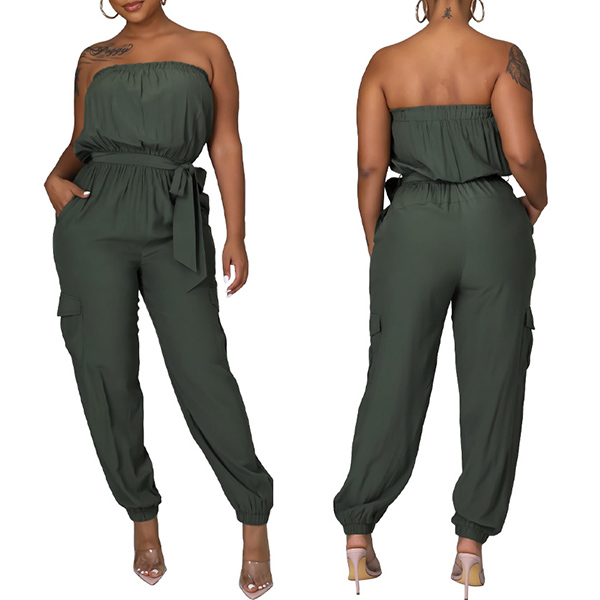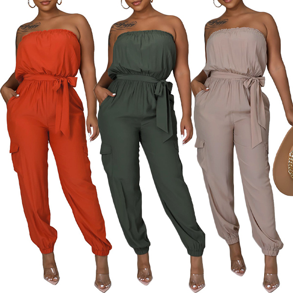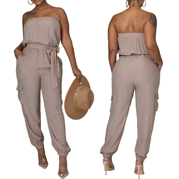 This jumpsuit features a strapless design, side patch pockets, and a self-tie waist for a chic streetwear look. Crafted from high-quality fabric, this jumpsuit ensures both comfort and style.