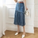 This skirt is the epitome of street style and fashion-forwardness. It combines the timeless appeal of denim with the edginess of stripe print and spliced detailing, creating a unique and eye-catching look.