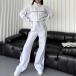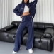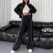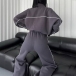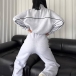 The street fashion sporty two-piece set consists of a jacket and sweatpants, offering a trendy and athletic-inspired look that is both stylish and comfortable. The stripe print adds a sporty and dynamic element to the ensemble, creating a modern and urban vibe. Crafted from high-quality fabric, this two-piece set is designed to be practical, stylish, and easy to wear.