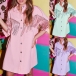 Featuring a stand collar and short sleeves, this shirt dress exudes a casual yet chic vibe. The front tassel detailing adds a playful and bohemian element, making it perfect for those who want to make a statement.