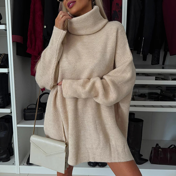 Elevate your winter wardrobe with this Knitted Sweater. This stylish sweater features a cozy turtleneck design and long sleeves to keep you warm and chic during the colder months. The knitted fabric adds texture and dimension, while the relaxed fit drapes beautifully on the body for a comfortable and flattering silhouette. Pair this sweater with jeans and boots for a casual street-style look.