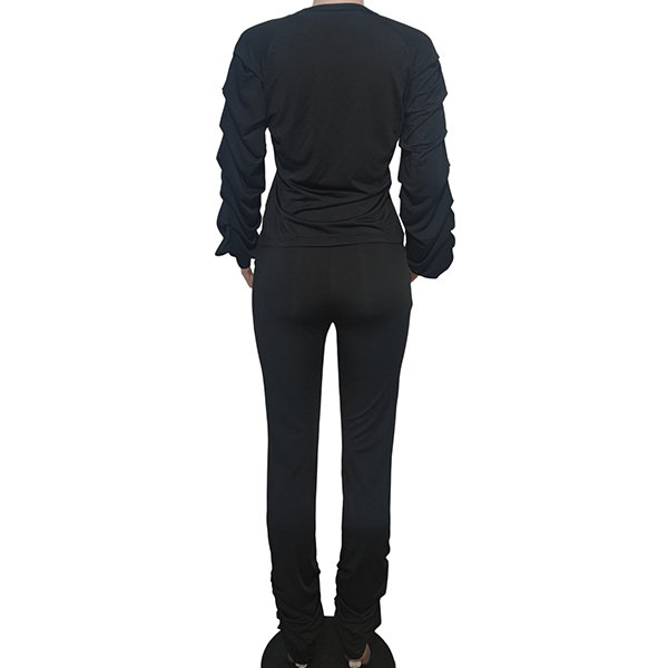 Crafted from high-quality materials, both the shirt and pants offer comfort and durability. The shirt features a trendy design with draped long sleeve which make it chic and stylish! And the pant is in slim fit slihoutte. Whether you’re heading to a casual outing or a night on the town, this two-piece set will keep you looking effortlessly chic.
