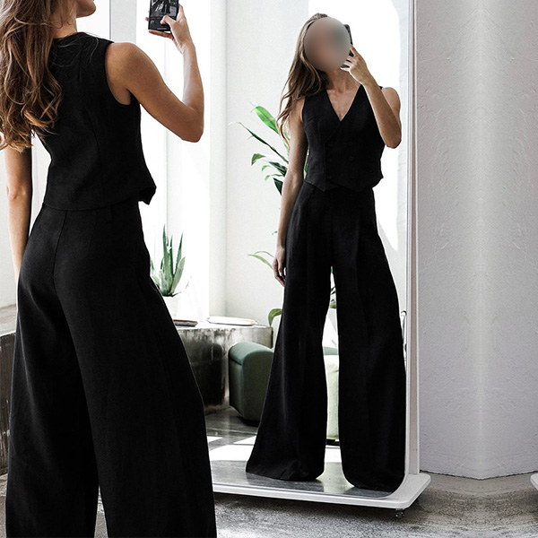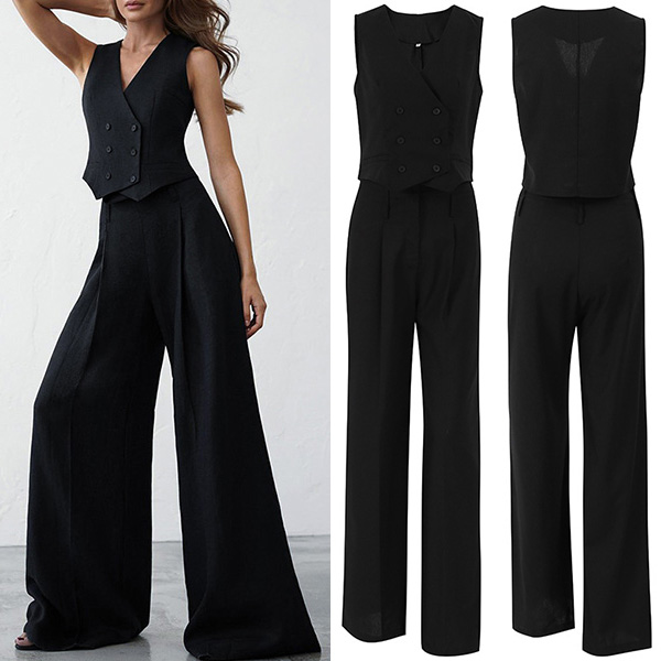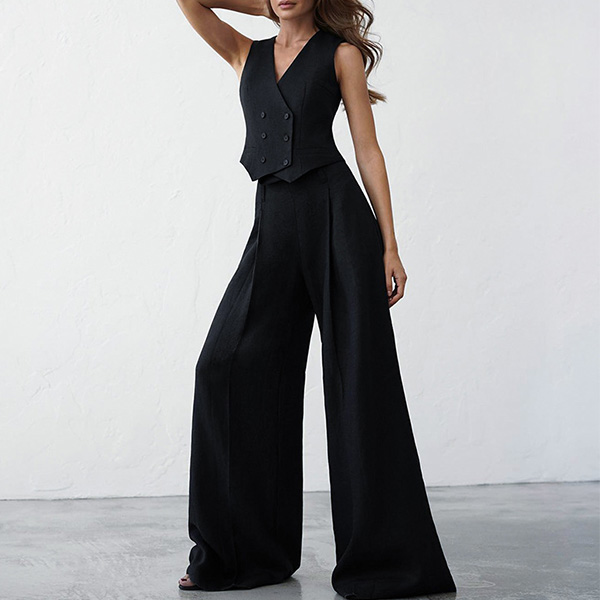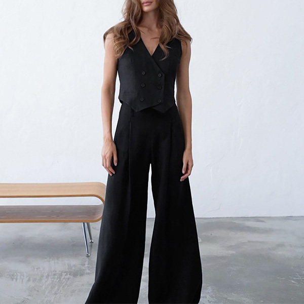 Street Fashion Two-piece Set Consit of Double-breasted Vest and Wide-leg Pants