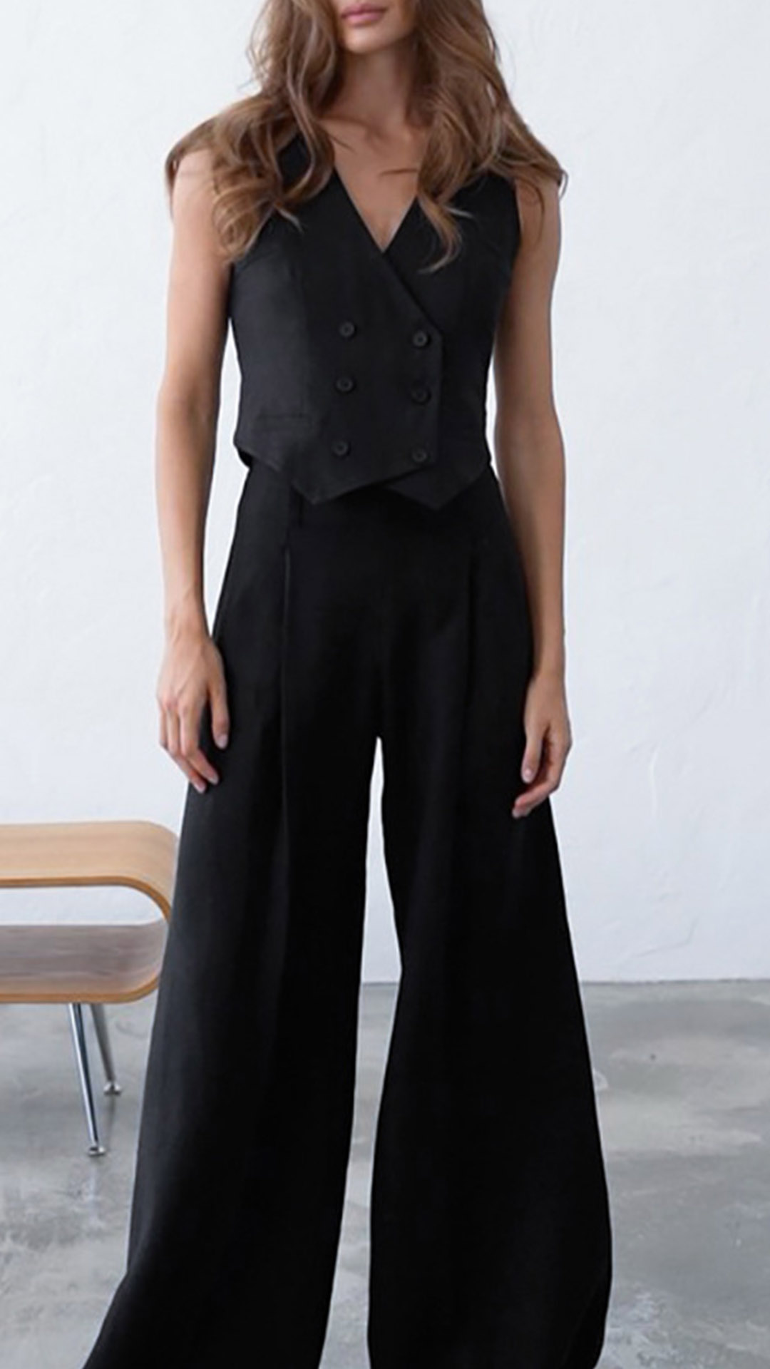 This set is perfect for those who want to achieve a trendy and edgy street style look. The double-breasted vest adds a touch of sophistication and structure, while the wide-leg pants create a relaxed and effortless silhouette. The two-piece set allows for easy coordination and versatility, making it a convenient option for any occasion.