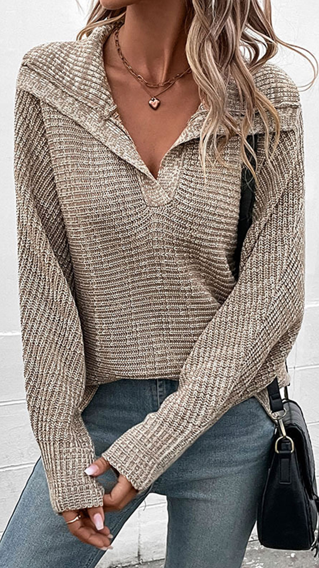 Street Fashion V-neck Lapel Long Sleeve Knitted Sweater