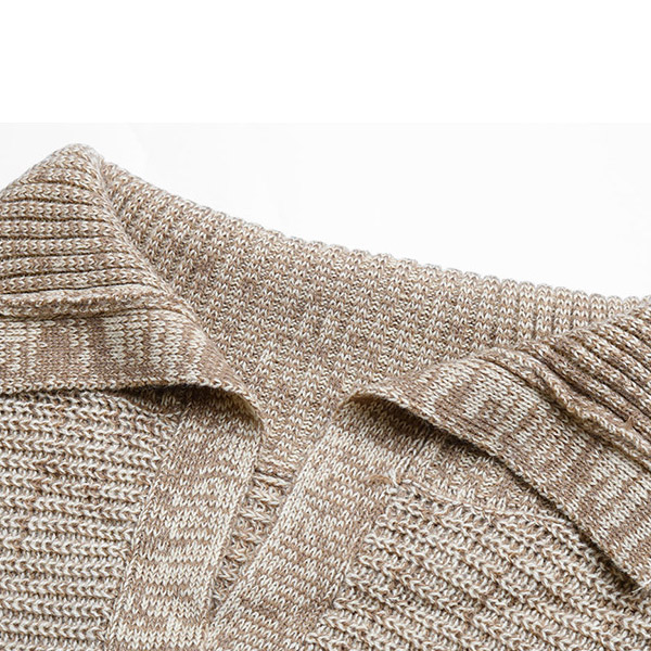 This sweater features a V-neckline with a lapel, creating a modern and sophisticated aesthetic, and cozy knitted fabric makes it a stylish and comfortable choice for streetwear ensembles.
