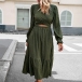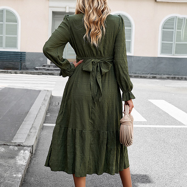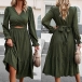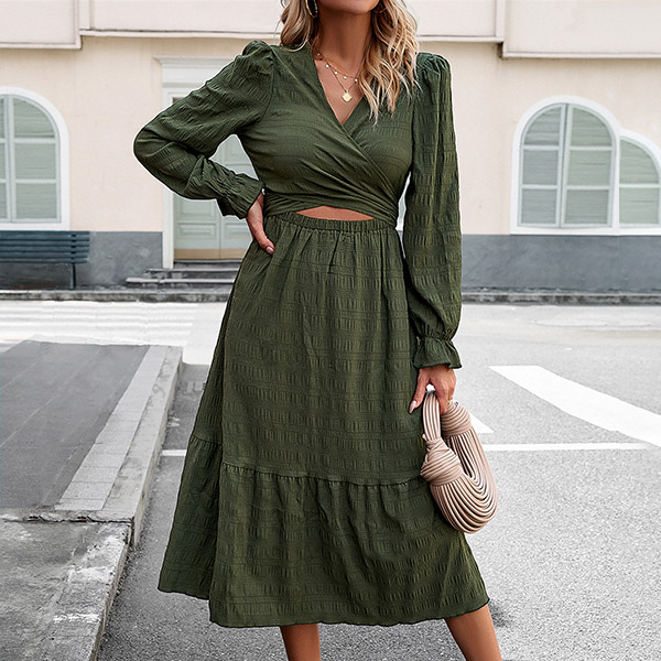 Street Fashion V-neck Long Sleeve Front Cutout Self-tie Midi Dress