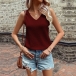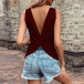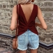 Street Fashion V-neck Ruched Backless Sleeveless Sleeveless Shirt