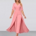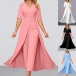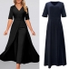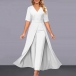 Street Fashion V-neck Short Sleeve High-rise Jumpsuit with Crepe Overlay Skirt