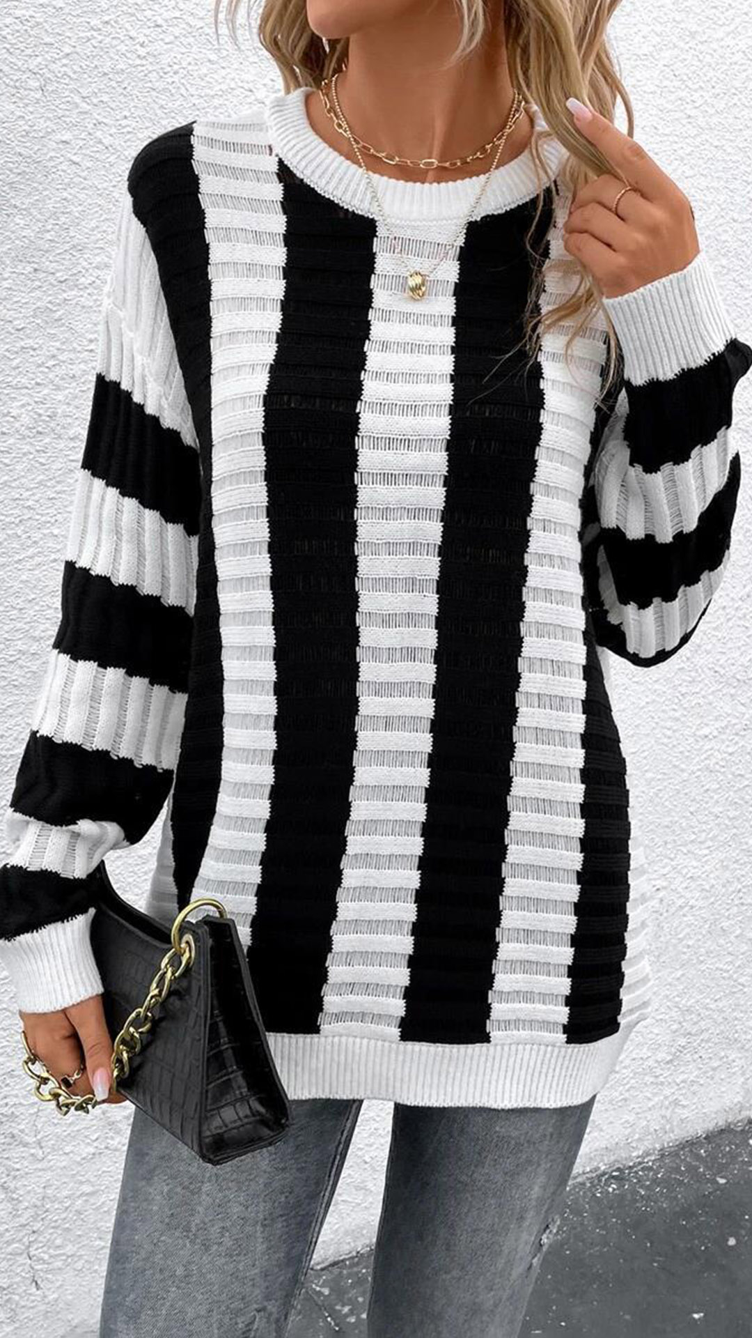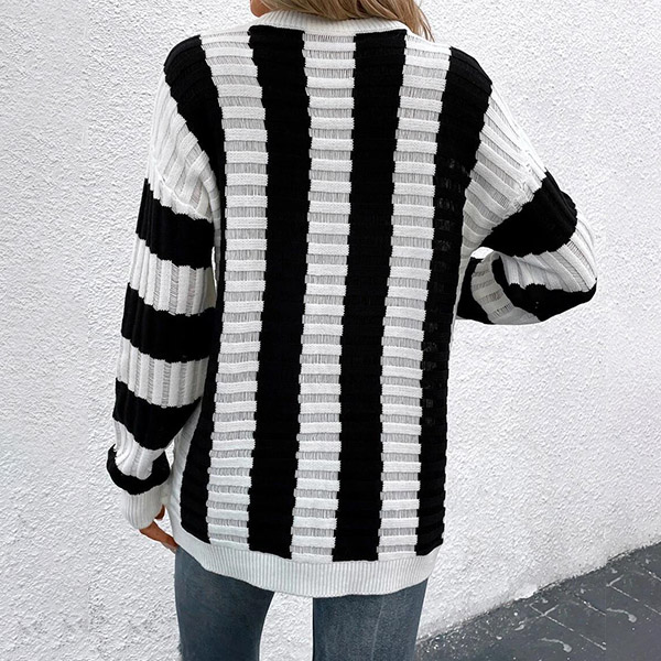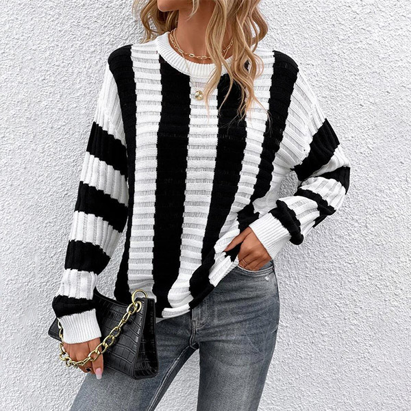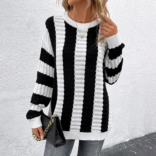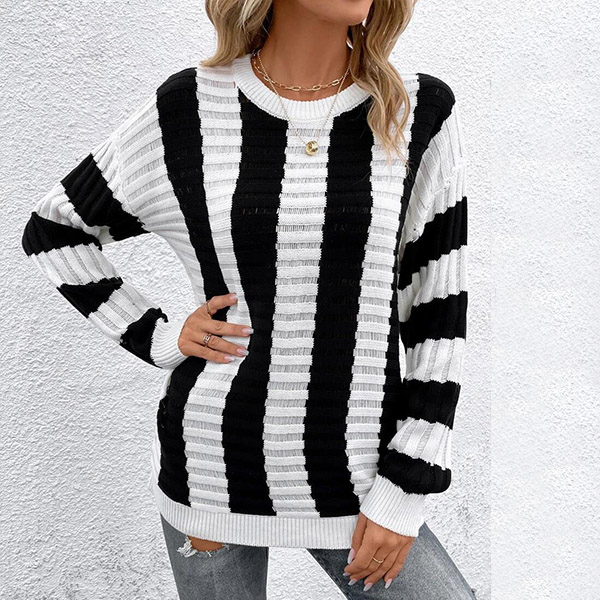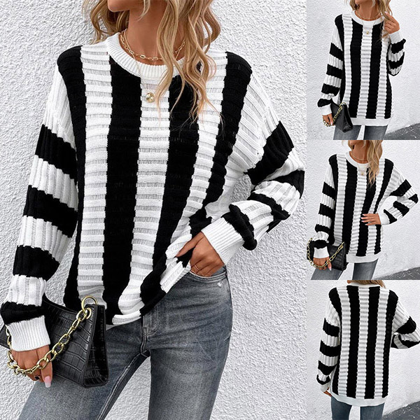 Street Fashion Vertical Striped Round Neck Long Sleeve Knitted Shirt