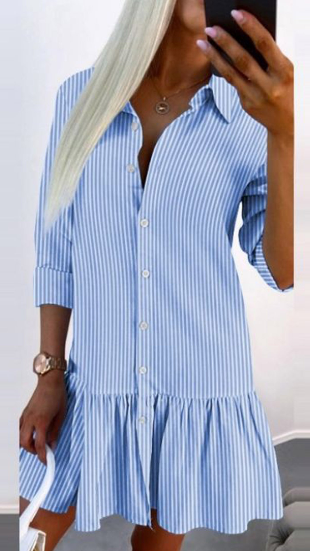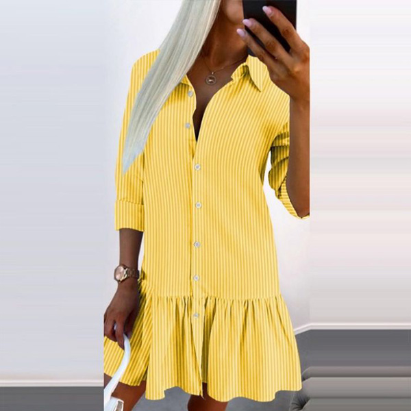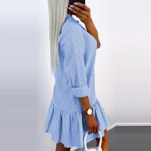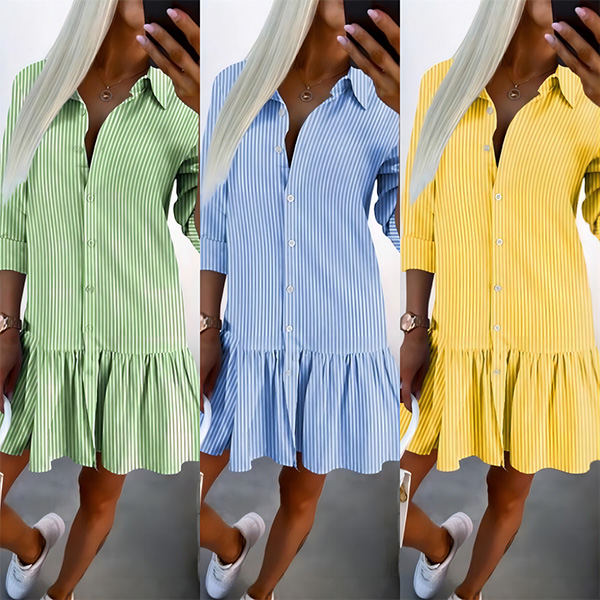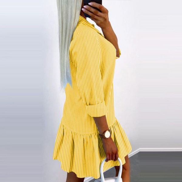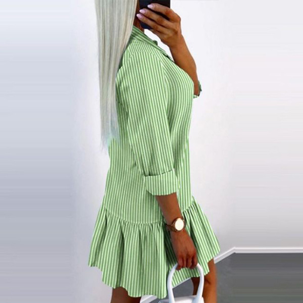 This dress is the perfect fusion of street style and sophistication. The vertical striped pattern adds a touch of modernity, while the fishtail hemline exudes a sleek and polished look. Pair it with sneakers for a casual day look!