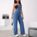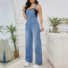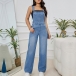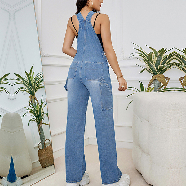 This jumpsuit is perfect for day-to-day wear. The denim fabric is soft and comfortable, while the wide-leg cut gives it a modern, edgy look. The suspender straps add a unique touch, and the pockets are perfect for carrying your essentials.