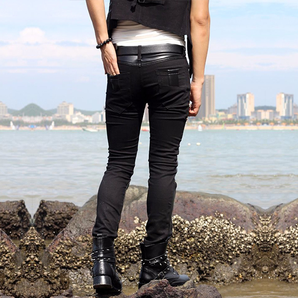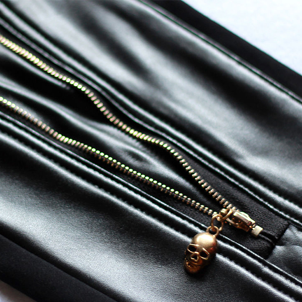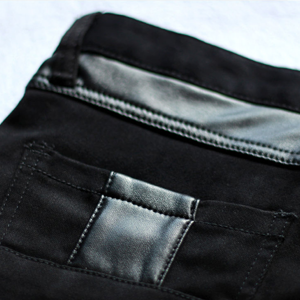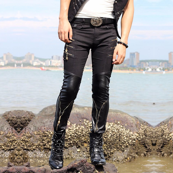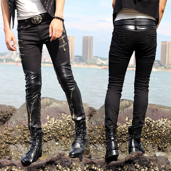 Street Fashion Zipper Artificial Leather PU Spliced Skinny Pants for Men