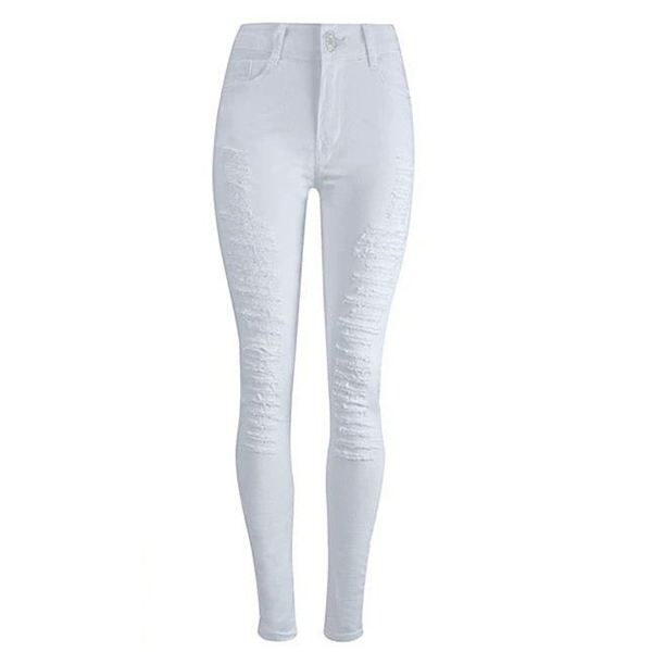 Stretch High-Waisted Jeans with Ripped Skinny Slim-Fit Design