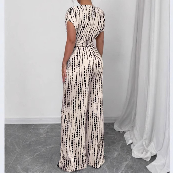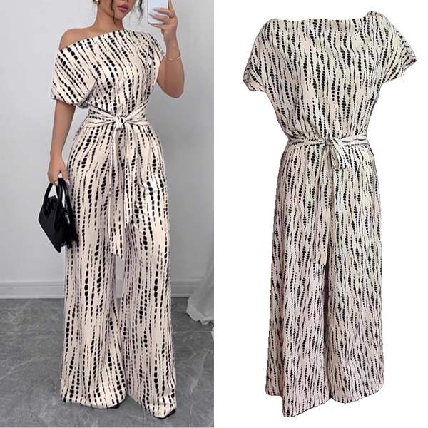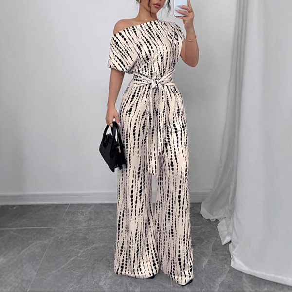 Striped Off-Shoulder Jumpsuit with Wide-Leg Pants and Tie Details