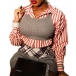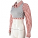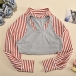 Striped Two Piece Long Sleeve Navel Shirt