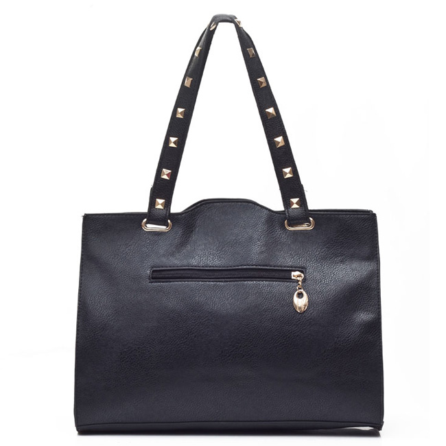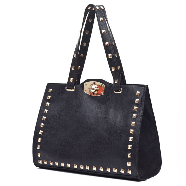 This bag is manufactured to excellent standard. Those rivets are firmly studded on the bag. High quality. Durable. Fastness. With three patch pockets, you can store your small things in it. It is very convenient for shopping or going to school. Pair with your loose fitting sweatshirt and the brown pant; you will be admired by your friends.