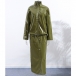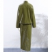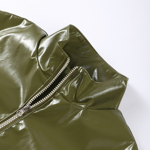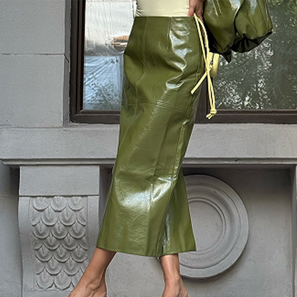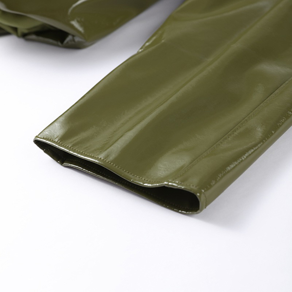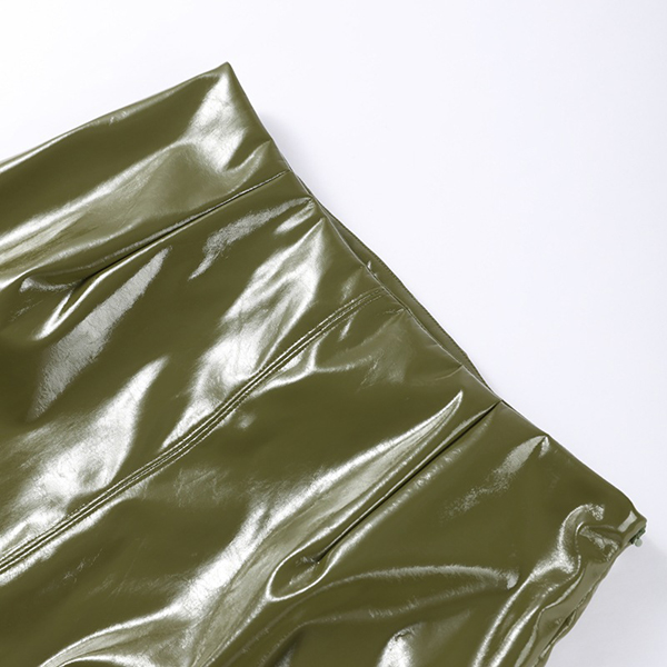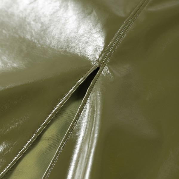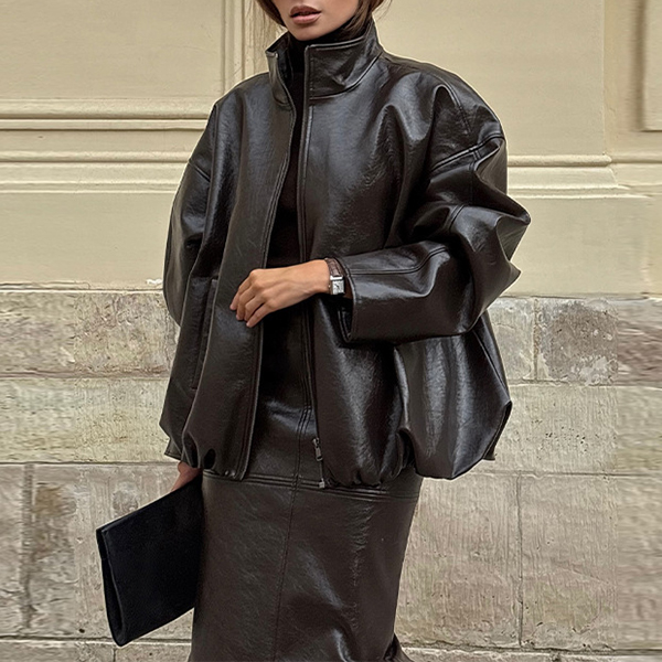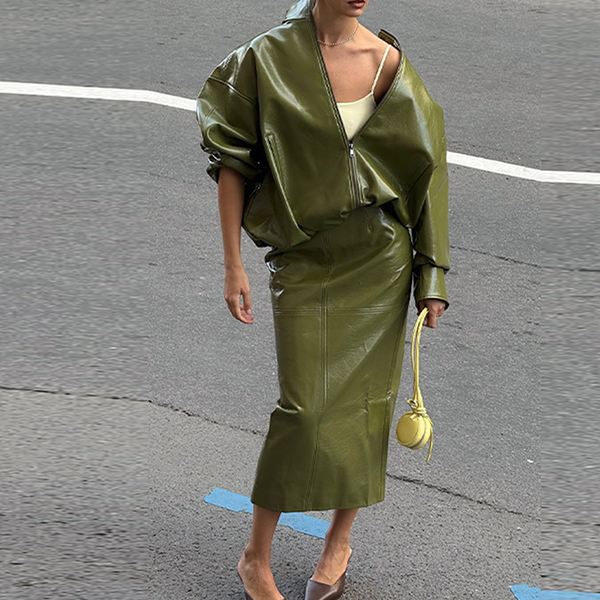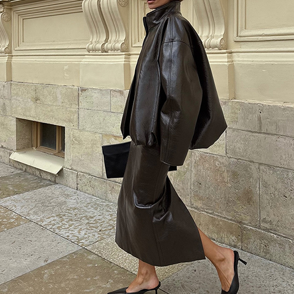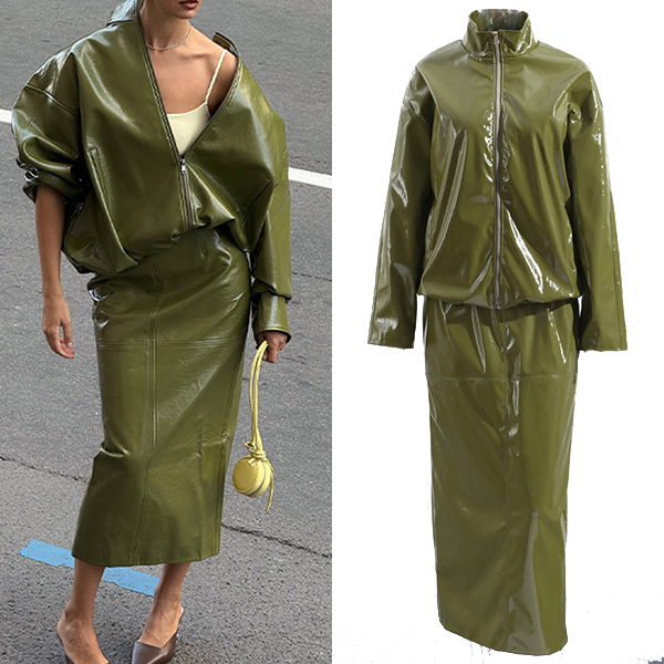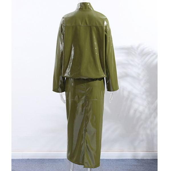 Stylish Artificial Leather PU Two-piece Set Consist of Stand Collar Jacket and Maxi Skirt