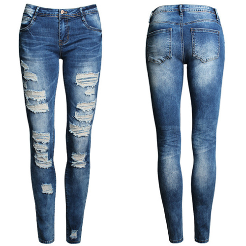 which makes it look quite stylish and fashion. What's more, there is a zipper at the front of this pair of jeans,