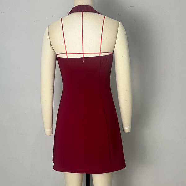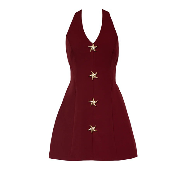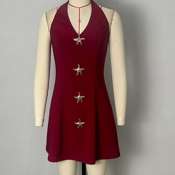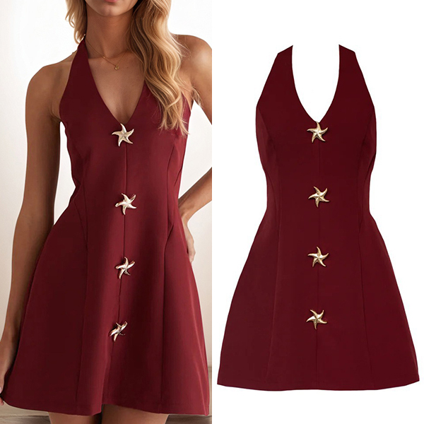 Stylish Commuter Mini Dress with Sleeveless Halter Neck Design and Decorative Starfish Appliques