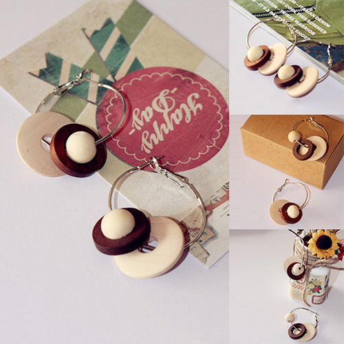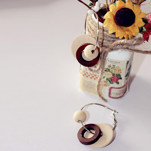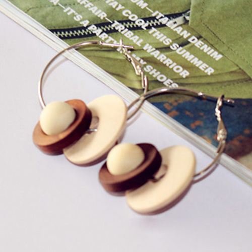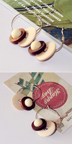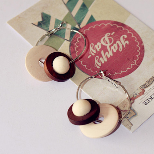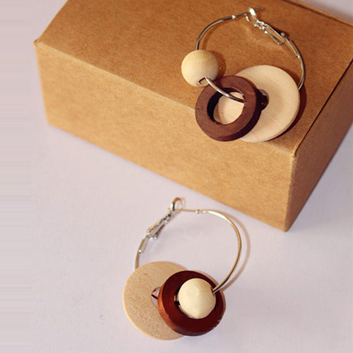 wood, natural and stylish. The earring is styled with geometric circle shaped design,